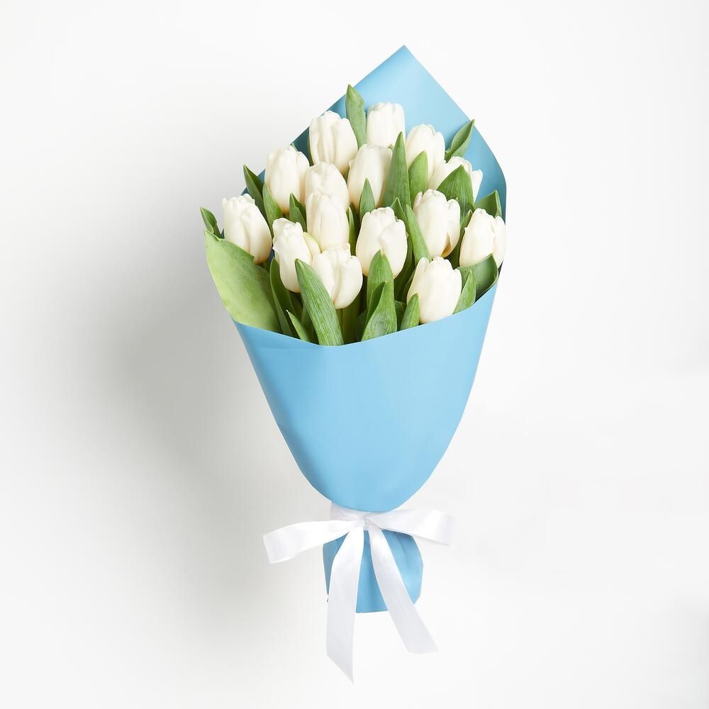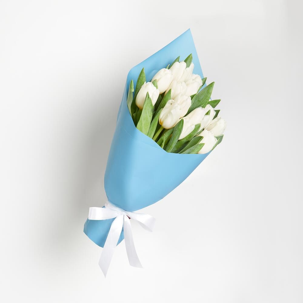 Состав: тюльпан белый - 15 шт - 15 шт, упаковка - 1 шт, лента - 1 шт.