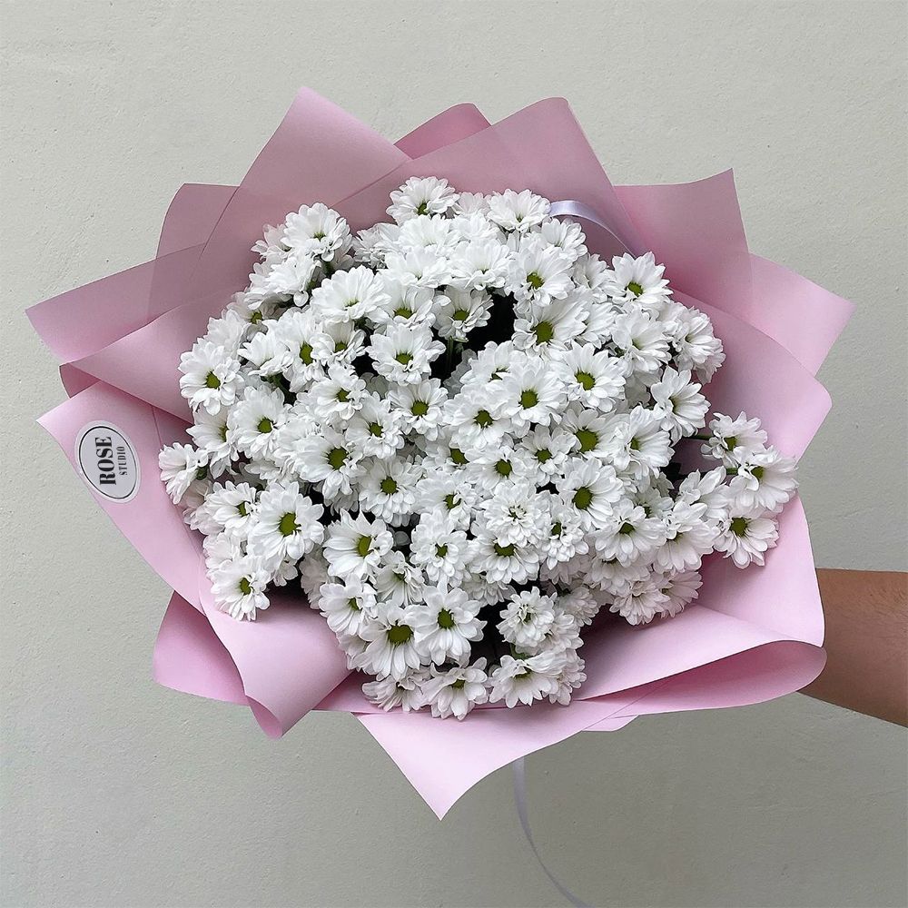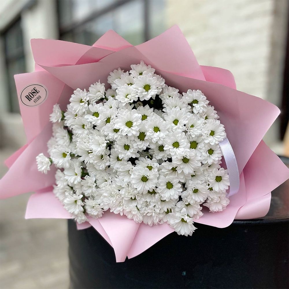 Состав: белые хризантемы - 19 шт. Ширина - 19 шт, высота - 45 шт.