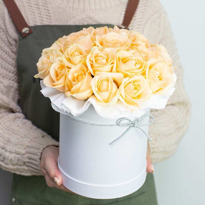 19 персиковых роз в цилиндре
