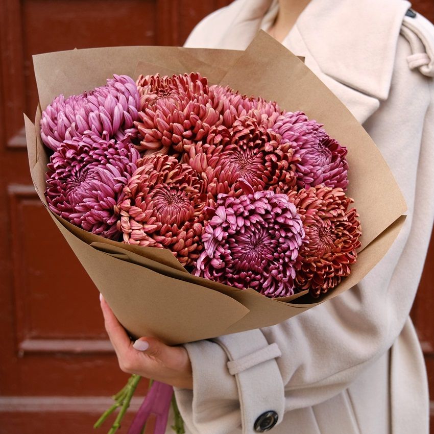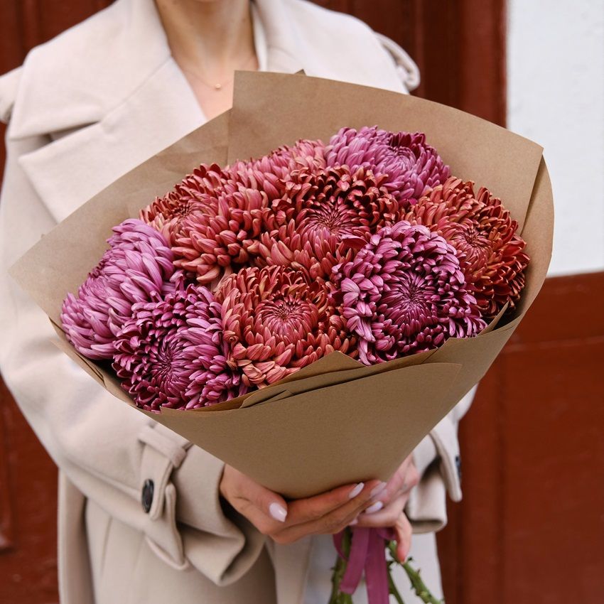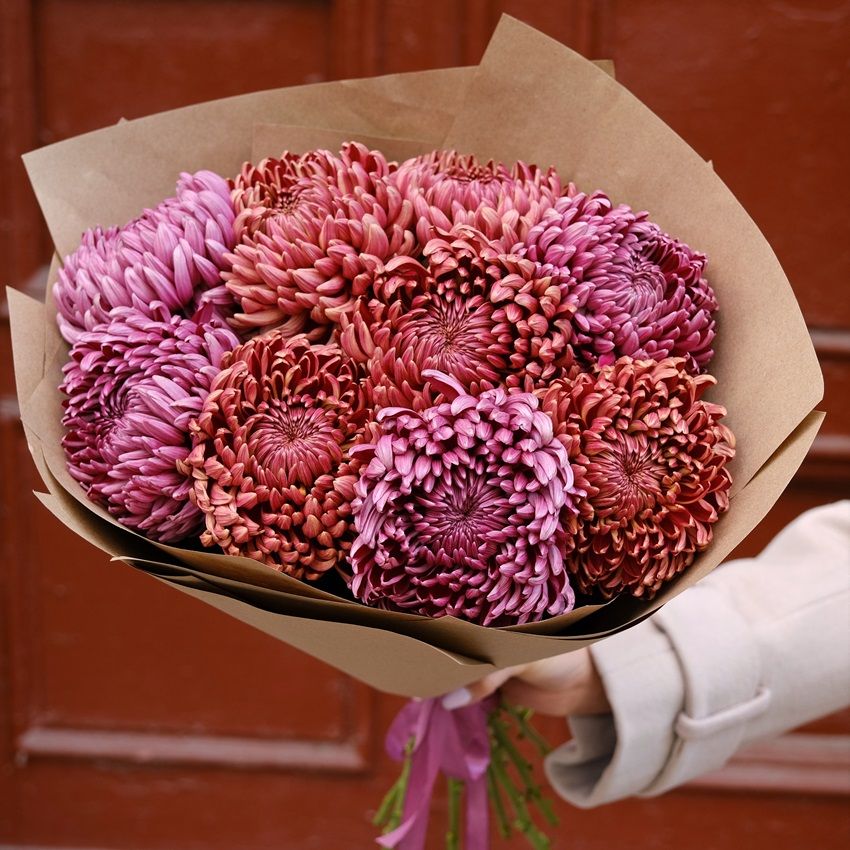 Состав: Хризантема бигуди - 9 - 9 шт, Крафт - 6 - 6 шт, Лента - 1 - 1 шт.