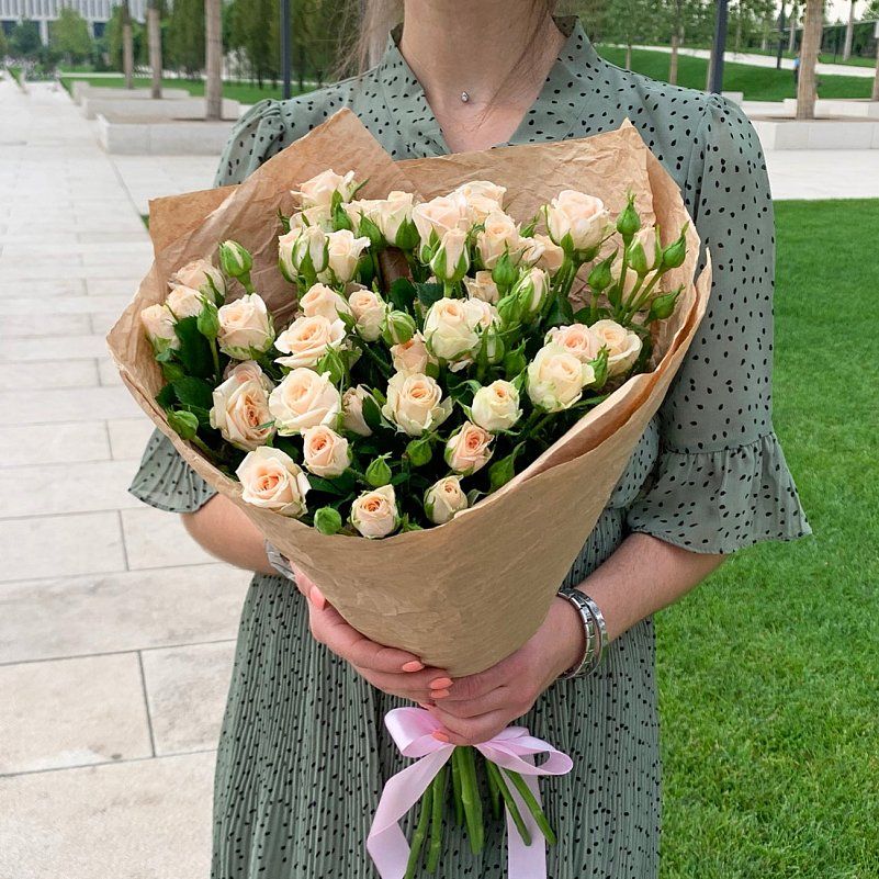 Состав: роза кустовая 50 см - 9 шт, упаковка крафт - 1 шт.