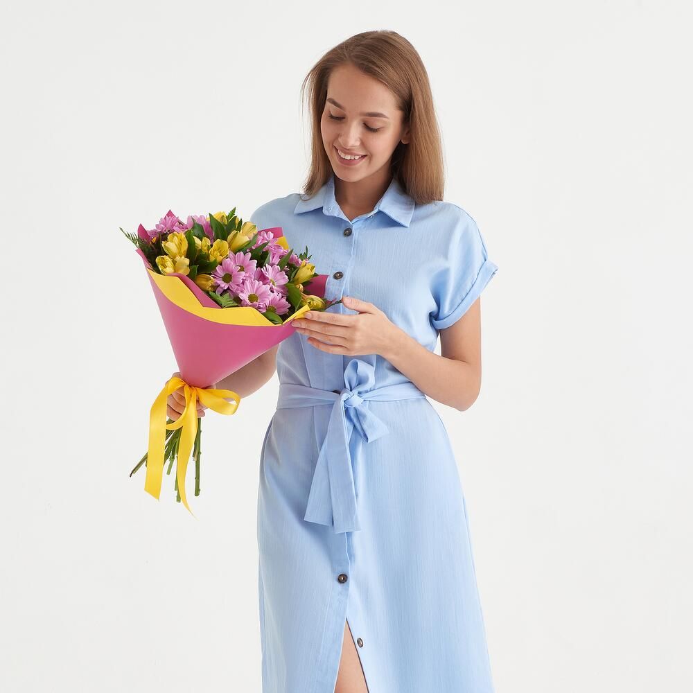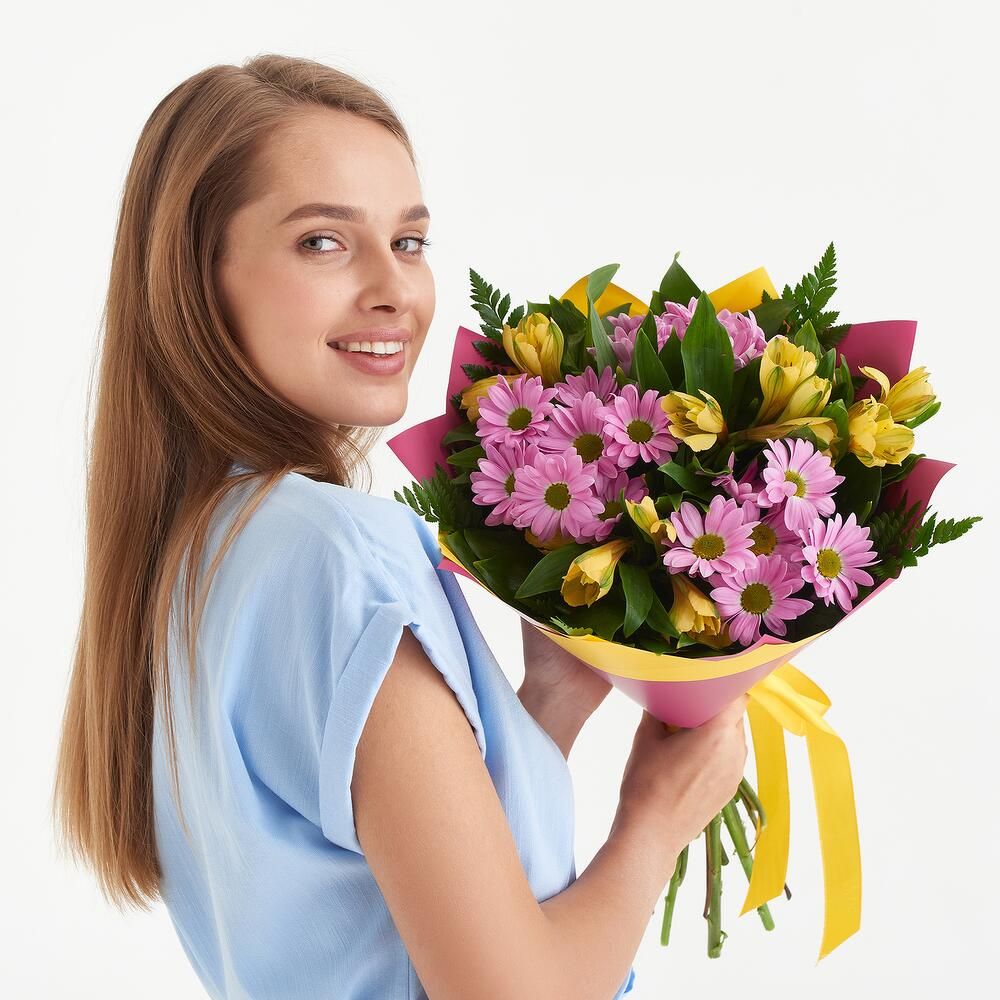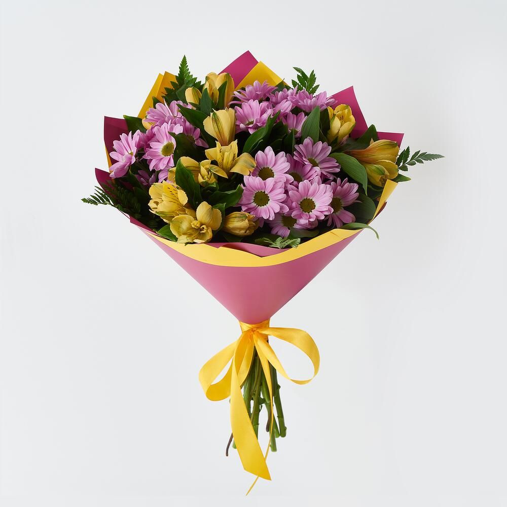 Букет из хризантем и альстромерии