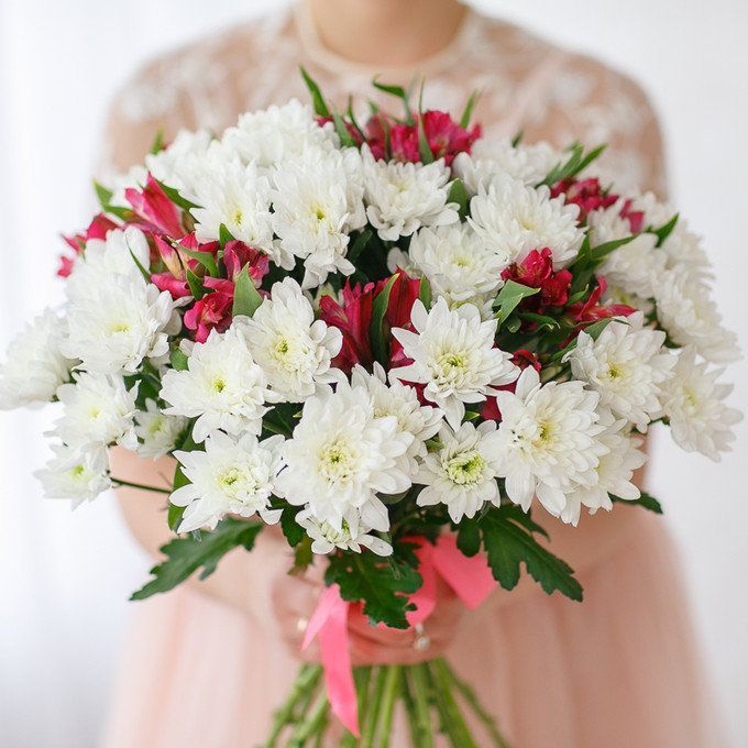 Состав: хризантема кустовая - 5 шт - 5 шт, альстромерия - 6 шт - 6 шт, лента - 1 шт.