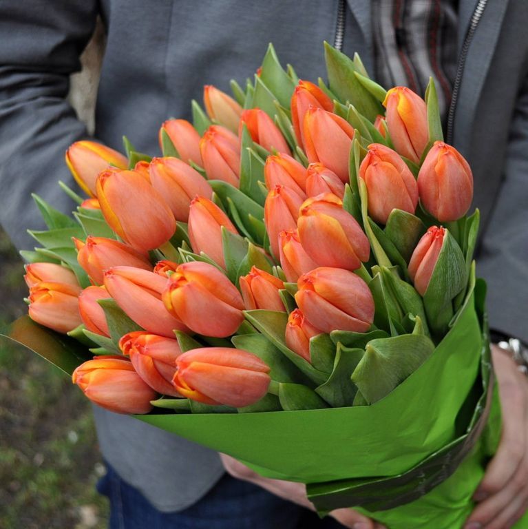Состав: тюльпаны - 39 шт - 39 шт, упаковка - 1 шт, лента - 1 шт.