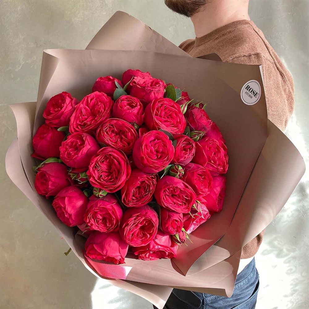 Состав: роза пионовидная 50 см - 29 шт, лента атласная - 2 шт - 2 шт, упаковка матовая - 3 шт. Ширина - 3 шт, Высота - 40 шт.