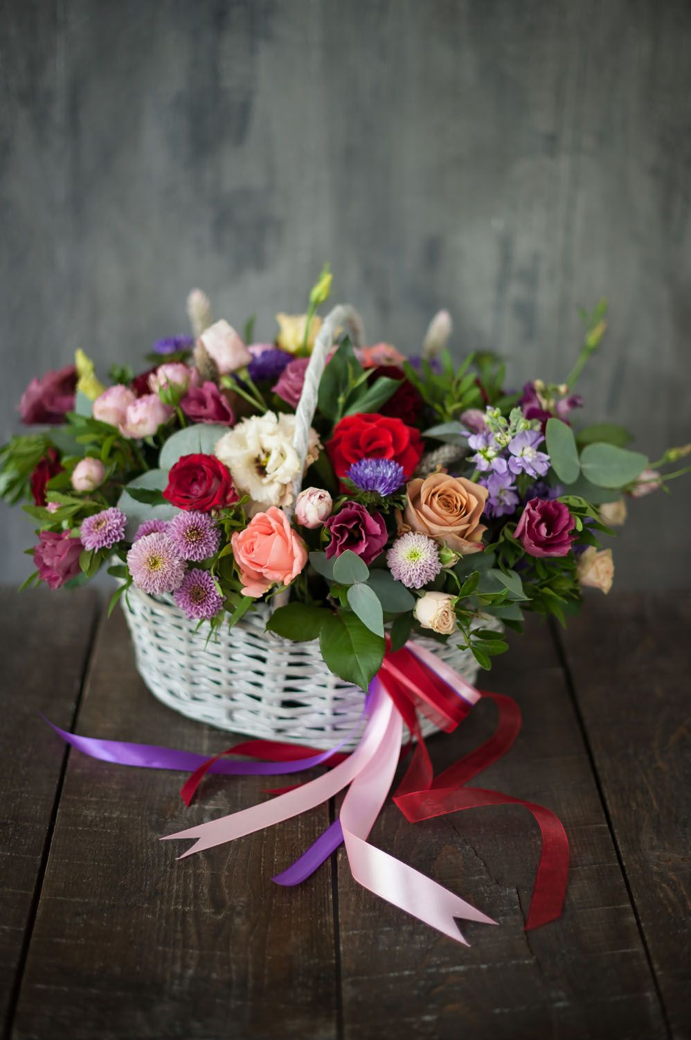 Состав: розы одноголовые и кустовые разных сортов, диантусы, львиный зев, эустома, альстромерия, разнотравие и прочее. Размеры: Высота Диаметр Если при заказе в наличии не оказалось полностью идентичного цветка, входящего в состав выбранного Вами букета, мы оставляем за собой право подобрать наиболее близкий к исходному вариант цветка из наличия. При этом цветовая гамма и стилистика букета будут сохранены. Готовый букет может немного отличаться от представленного на фотографии.