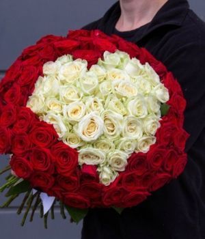 Состав: Классика жанра - это букет из 101 розы, который порадует Вашу вторую половинку. Композиция с белоснежным сердцем внутри, обрамленная сочным красным, как нельзя лучше подойдет для предложения руки и сердца.