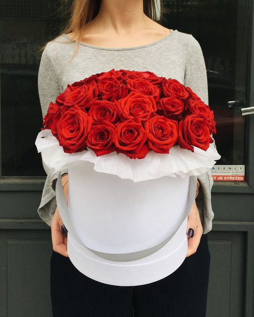 Состав: роза красная 50 см - 21 шт, шляпная коробка Размеры: диаметр - 1 шт, высота.