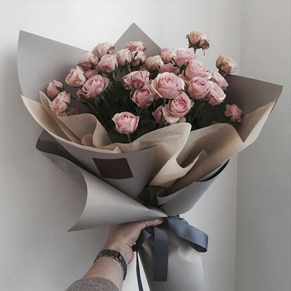 Состав: роза пионовидная кустовая 50 см - 11 шт, оформлена в дизайнерскую упаковку крафт - 1 шт, фетр, лента - 1 шт.